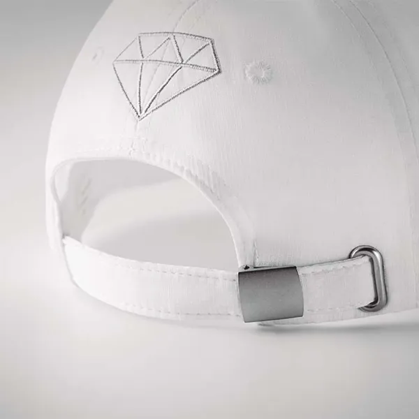 Könnyű, 6 paneles sport sapka szendvics ellenzővel. A sapka ripstopból, egy szövött, könnyű, nylonszálas anyagból készült, amely ellenáll a hasadásnak és szakadásnak.