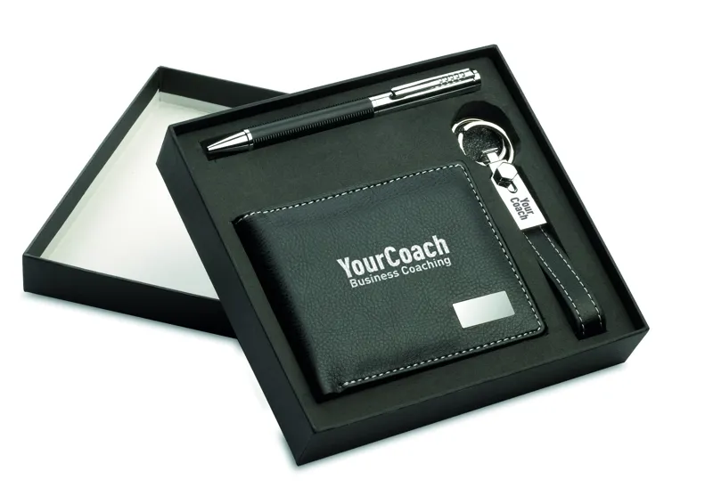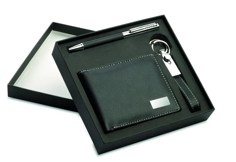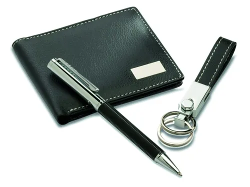 ELEGANCI Kulcstartó, toll, tárca szett Fekete