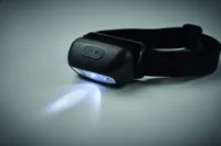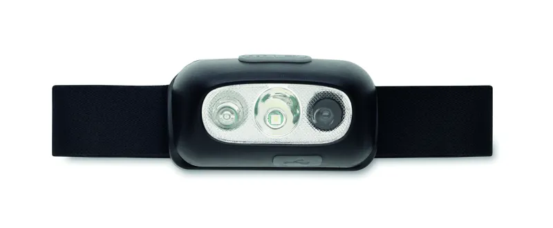 Újratölthető és állítható fejlámpa ABS-ből, 1 LED-fénnyel (50 lumen), 3 világítási móddal. Beépített 400 mAh újratölthető akkumulátorral és töltőkábellel.