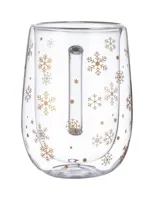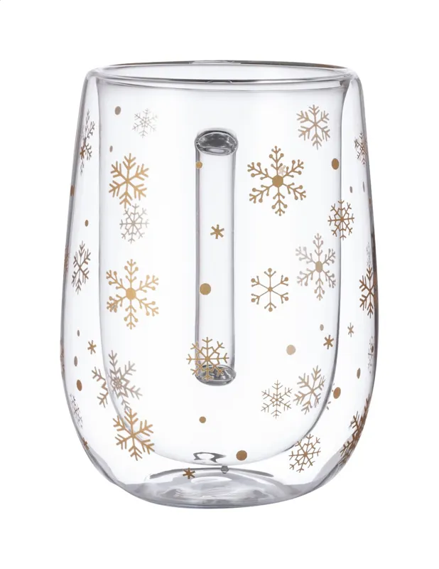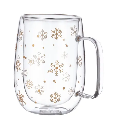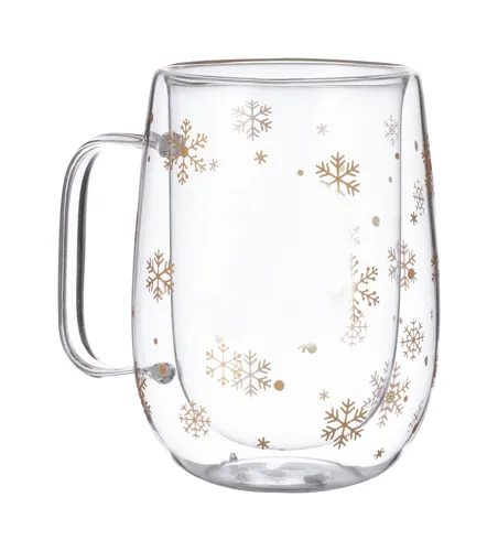 Duplafalú thermo bögre boroszilikát üvegből hópehely mintával, 400 ml. Fekete papírdobozban szállítjuk.