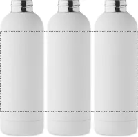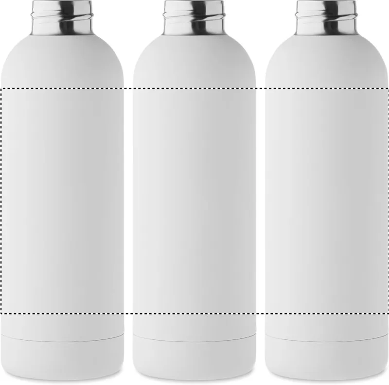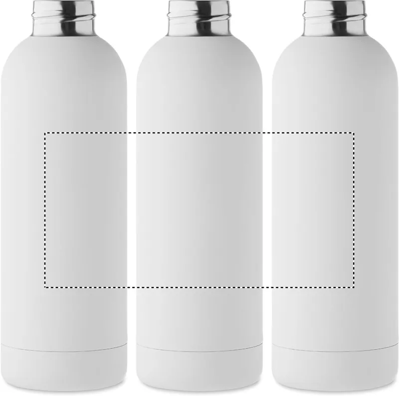 Duplafalú termoszpalack újrahasznosított rozsdamentes acélból (90% újrahasznosított rozsdamentes acél és 10% rozsdamentes acél), gumírozott felülettel és szilikon fogantyúval. Szivárgásmentes. Űrtartalom: 500 ml.