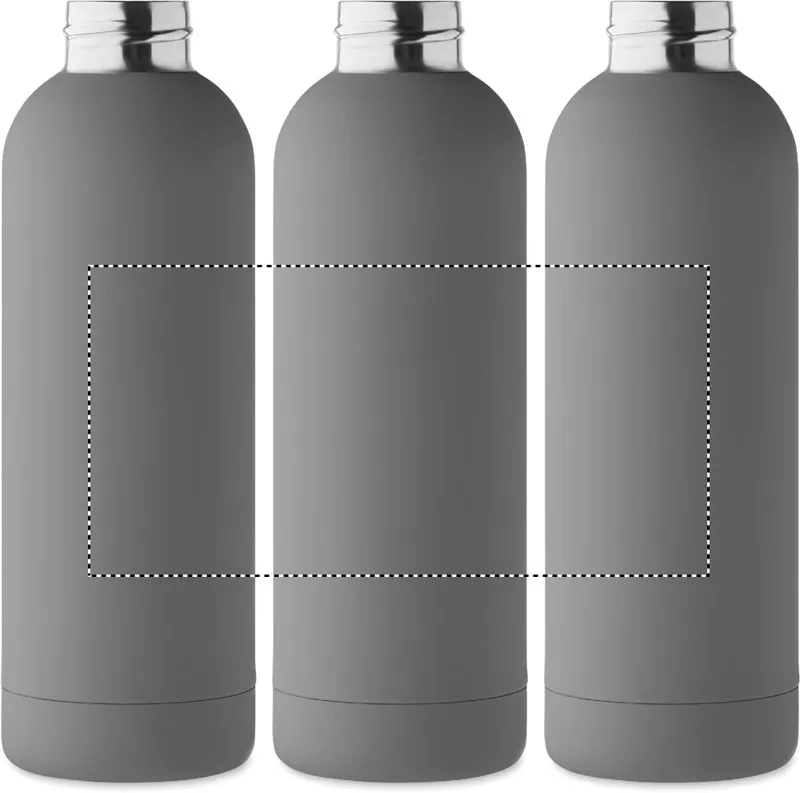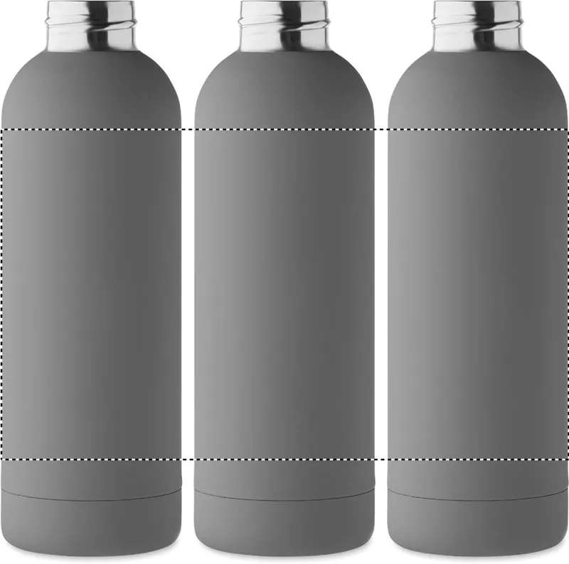 Duplafalú termoszpalack újrahasznosított rozsdamentes acélból (90% újrahasznosított rozsdamentes acél és 10% rozsdamentes acél), gumírozott felülettel és szilikon fogantyúval. Szivárgásmentes. Űrtartalom: 500 ml.