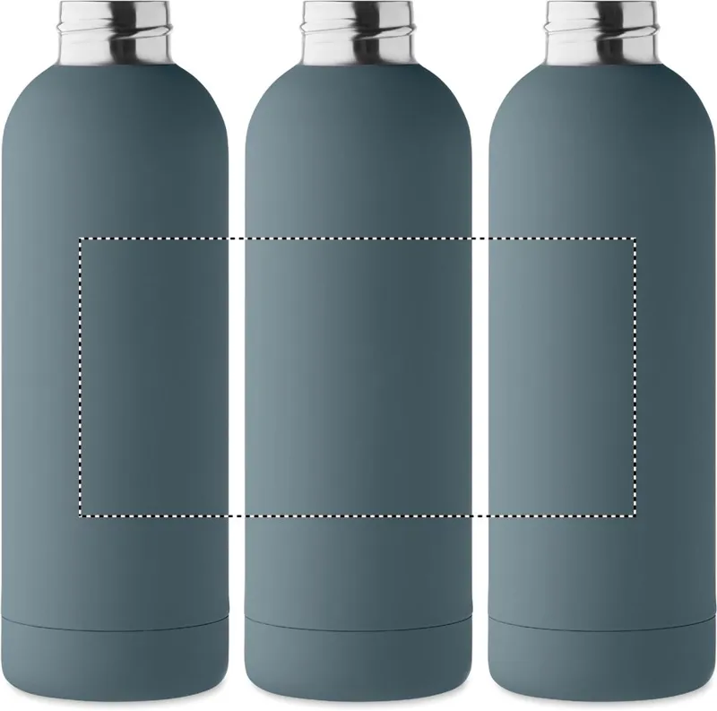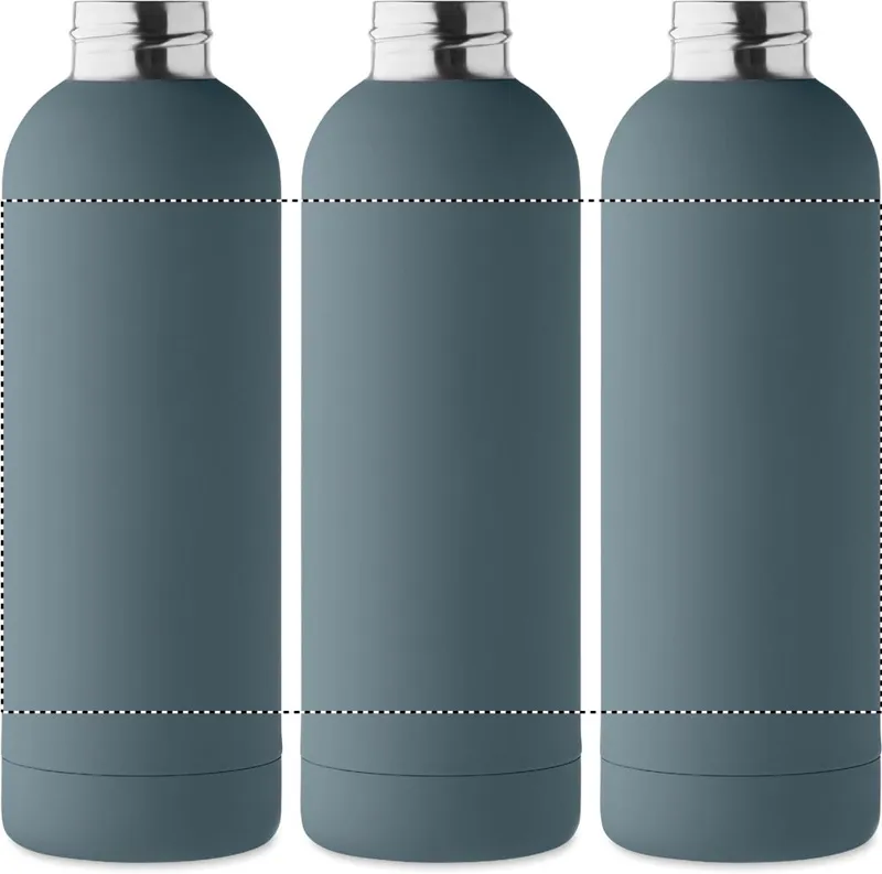 Duplafalú termoszpalack újrahasznosított rozsdamentes acélból (90% újrahasznosított rozsdamentes acél és 10% rozsdamentes acél), gumírozott felülettel és szilikon fogantyúval. Szivárgásmentes. Űrtartalom: 500 ml.