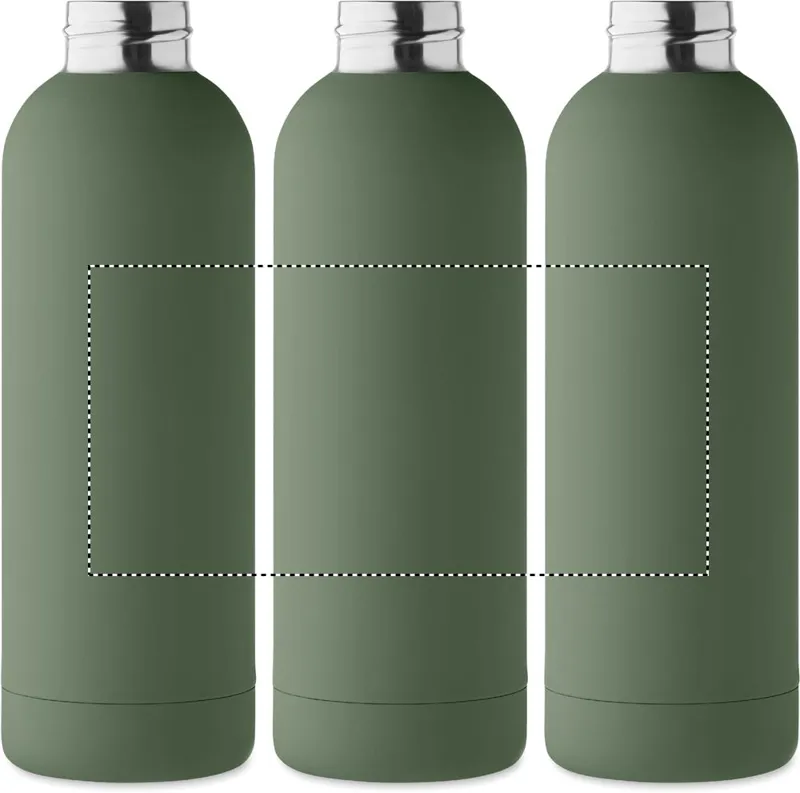 Duplafalú termoszpalack újrahasznosított rozsdamentes acélból (90% újrahasznosított rozsdamentes acél és 10% rozsdamentes acél), gumírozott felülettel és szilikon fogantyúval. Szivárgásmentes. Űrtartalom: 500 ml.