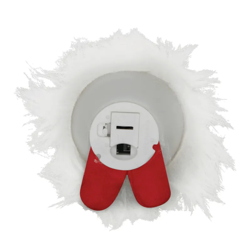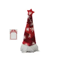 EMIL karácsonyi törpe, világítással, hegyes gyapjúsapka, amely a benne lévő drótnak köszönhetően tetszés szerint formázható, dekoratív figura ki- és bekapcsolható lámpával, elemes (2x LR44 mellékelve), ajándék címke nyomtatáshoz