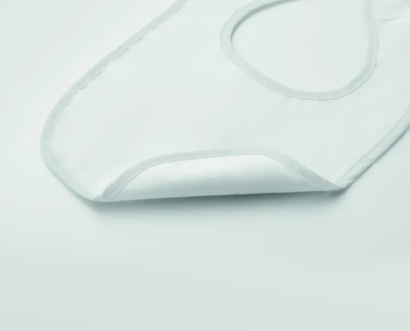 Poliészter-pamut kevert szálas baba előke. PEVA hátsó rész. Tépőzárral.