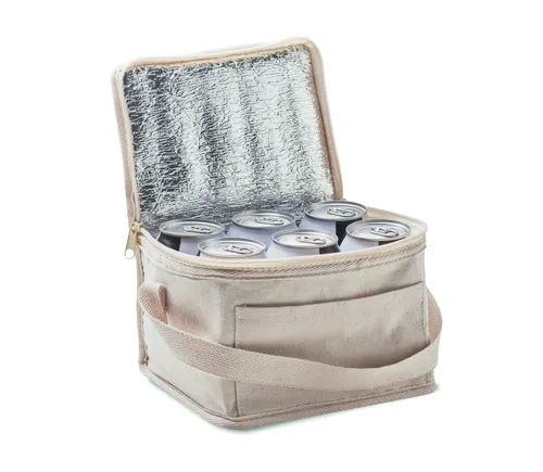 280 g vastag pamut anyagból készült hűtőtáska elülső zsebbel. Szigetelés: 3 mm-es laminált alumíniumfólia. Kapacitás: 3 L.