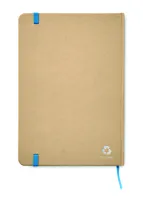 A5 jegyzetfüzet újrahasznosított karton keménytáblás borítóval. Cérnafűzött. 160 vonalas oldal (80 lap) újrahasznosított papírból. Elasztikus zárópánt, könyvjelző szalag. FSC®-certified | FSC MIX CREDIT, P7.1, FSC-C213206