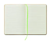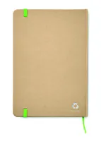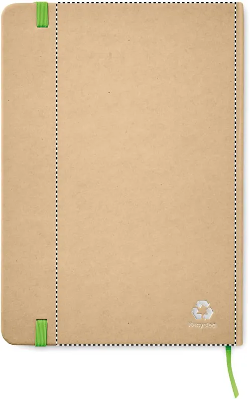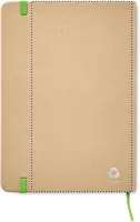 A5 jegyzetfüzet újrahasznosított karton keménytáblás borítóval. Cérnafűzött. 160 vonalas oldal (80 lap) újrahasznosított papírból. Elasztikus zárópánt, könyvjelző szalag. FSC®-certified | FSC MIX CREDIT, P7.1, FSC-C213206