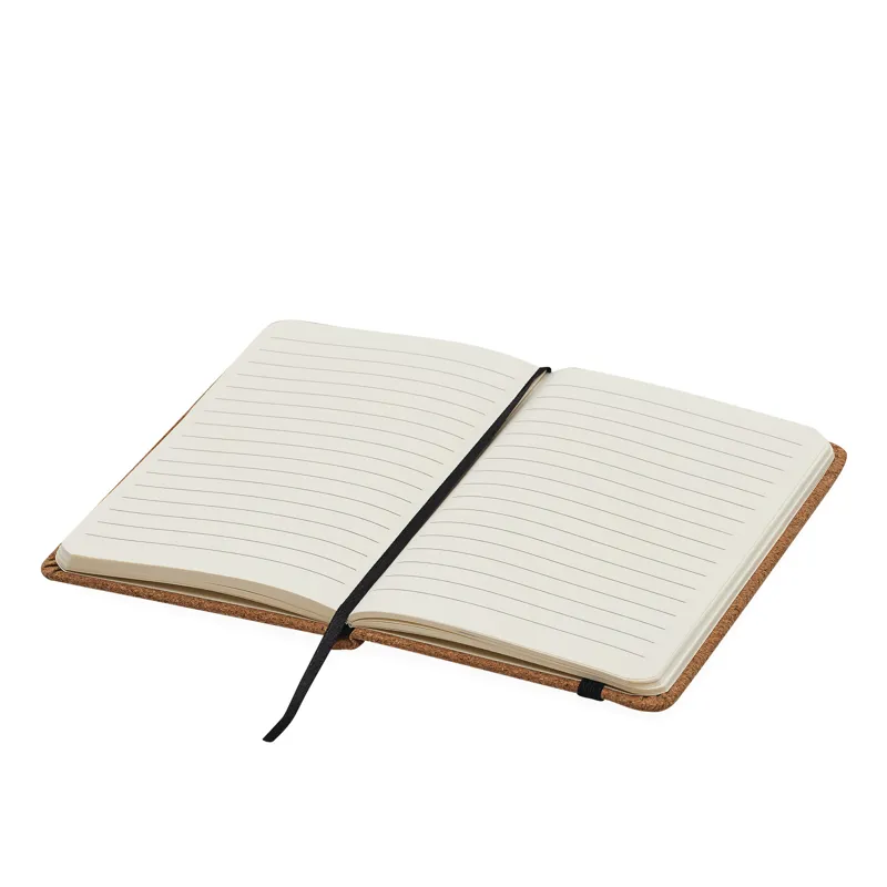EXECUTIVE jegyzetfüzet DIN A6-os méret lekerekített szélekkel: gumipánttal a lezáráshoz, beépített könyvjelzővel, 80 lapos, vonalas, 70 g/m² - parafa borítóval