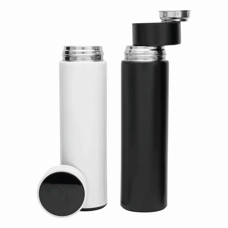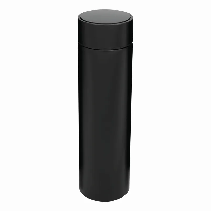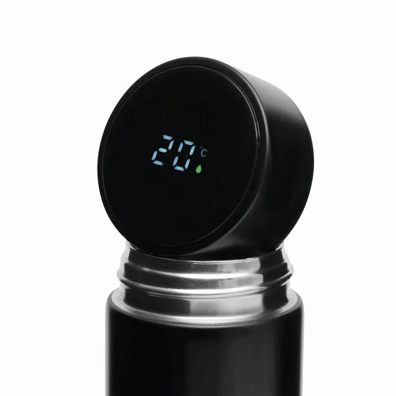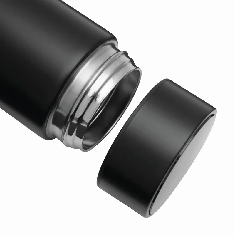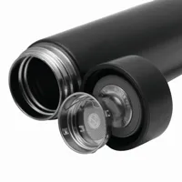 EXQUISITE duplafalú vákuum kulacs: a palack kívül és belül rozsdamentes acélból, csavaros fedél beépített digitális hőmérővel, kivehető teaadagolóval, kapacitás: kb. 500 ml
