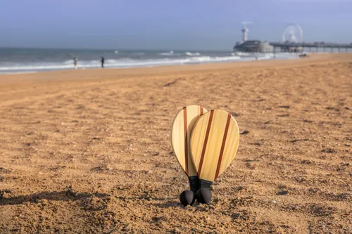 Elegáns, szemet gyönyörködtető frescobol szett strandra, parkba vagy nyaralásra. Erős és tartós fenyőfából készült, Sapele fával keverve, amely miatt a fa mintája ütőnként eltérő lehet. Két kiváló minőségű labdát tartalmaz. Extra kényelmes fogással a tökéletes irányítás érdekében. Pamut tasakban.