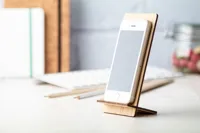 Asztali mobiltelefon-tartó bambusz furnérból. Lapra szerelve szállítjuk.