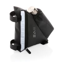 PU, fényvisszaverő biciklis táska palacktartóval. Ideális kiegészítő biciklizéshez: elférnek benne a legszükségesebb tartozékekok valamint egy vizespalack is. A tépőzáras szalagoknak köszönhetően könnyen a bicikli vázára illeszthető. Vízálló. A fényvisszaverő funkció az EN 13356:2001 tesztnek megfelelő.