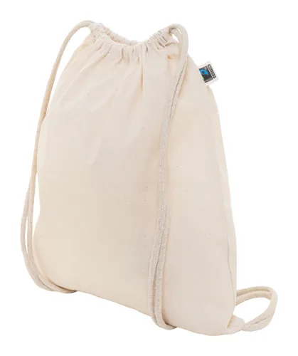 Fairtrade pamut zsinóros hátizsák megkülönböztető Fairtrade címkével. 100% Fairtrade pamut, 180 g/m².