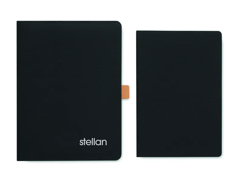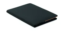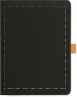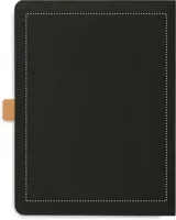 A5 iratmappa RPET anyagból, műbőr részletekkel. Cserélhető A5 jegyzetfüzet keménytáblás parafa borítóval. Cérnafűzött. 128 vonalas oldal (64 lap) újrahasznosított papírból. Tolltartó. 2 kártyatartó és egy nagy rekesz. Elasztikus zárópánt fém részlettel. FSC®-certified | FSC MIX, P8.6, FSC-C213206