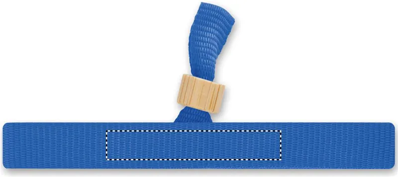 300D RPET poliészterből készült csuklópánt bambuszgyűrűs záródással. A csuklópánt 34 cm hosszú és 1,5 cm széles. A bambusz természetes anyag, színében, mintázatában és méretében esetenként eltérő lehet.