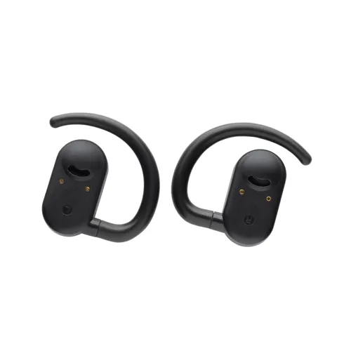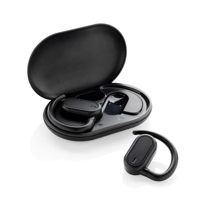 Egyedi, nyitott kialakítású, vezeték nélküli fülhallgató, amely RCS (Recycled Claim Standard) újrahasznosított ABS-ből készült. A nyitott kialakításnak és a fülhorognak köszönhetően egész nap viselhető. Nem illeszthető a fülbe, hanem a fülre illeszkedik, és lehetővé teszi, hogy zenehallgatás közben is hallja a környezetet. Teljes újrahasznosított anyagtartalom: 58% a termék összsúlya alapján. Az RCS-tanúsítvány biztosítja az újrahasznosított anyagok ellátási láncát. A tökéletesen illeszkedő fülhallgató 30 mAh-s akkumulátorral rendelkezik és a 200 mAh-s töltőtokban 1,5 órán belül újratölthető. Az automatikus párosítás funkcióval könnyen párosítható a mobileszközhöz. Lejátszási idő közepes hangerővel kb. 5 óra. 5.3-as vezeték nélküli kapcsolattal az optimális csatlakozáshoz. Működési távolság akár 10 méter. Hívásfogadás funkcióval és mikrofonnal. RCS újrahasznosított TPE töltőkábellel. FSC® mix kraft csomagolásban. A termék és tartozékai 100% PVC-mentesek.