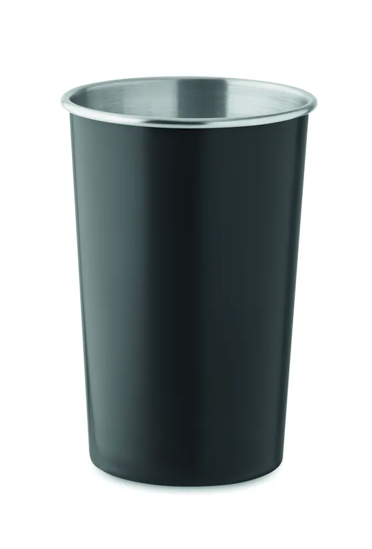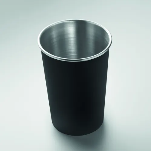 Többször felhasználható, újrahasznosított rozsdamentes acél (90% újrahasznosított rozsdamentes acél és 10% rozsdamentes acél) pohár. Űrtartalom: 350 ml. Mivel ez egy szimplafalú bögre, hőátadás lehetséges.