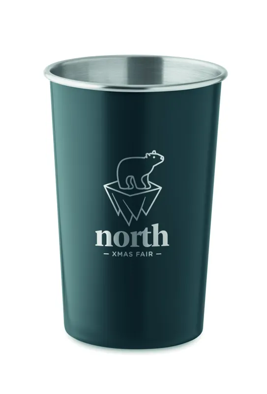 Többször felhasználható, újrahasznosított rozsdamentes acél (90% újrahasznosított rozsdamentes acél és 10% rozsdamentes acél) pohár. Űrtartalom: 350 ml. Mivel ez egy szimplafalú bögre, hőátadás lehetséges.