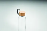 Üvegpalack bambuszfedéllel és TPU pánttal. Nem alkalmas szénsavas italokhoz. Űrtartalom: 500 ml. Szivárgásmentes. A bambusz természetes anyag, színében, mintázatában és méretében esetenként eltérő lehet.