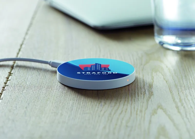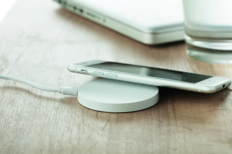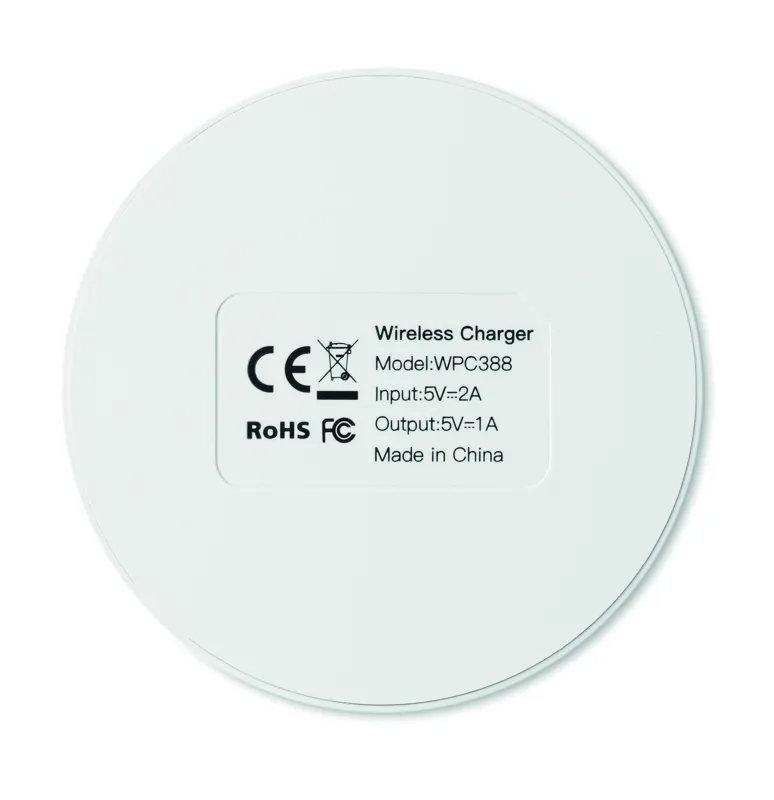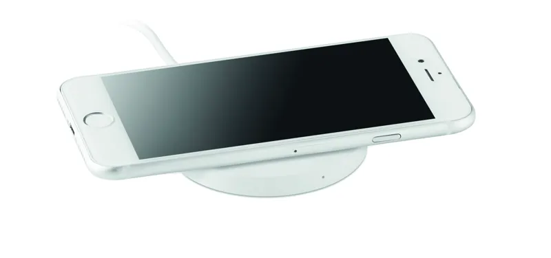 Vezeték nélküli töltő. Helyezze rá a telefont a töltéshez. Teljesítmény: DC5V/1A (5W). Ideális 4 szín kolor emblémázáshoz.