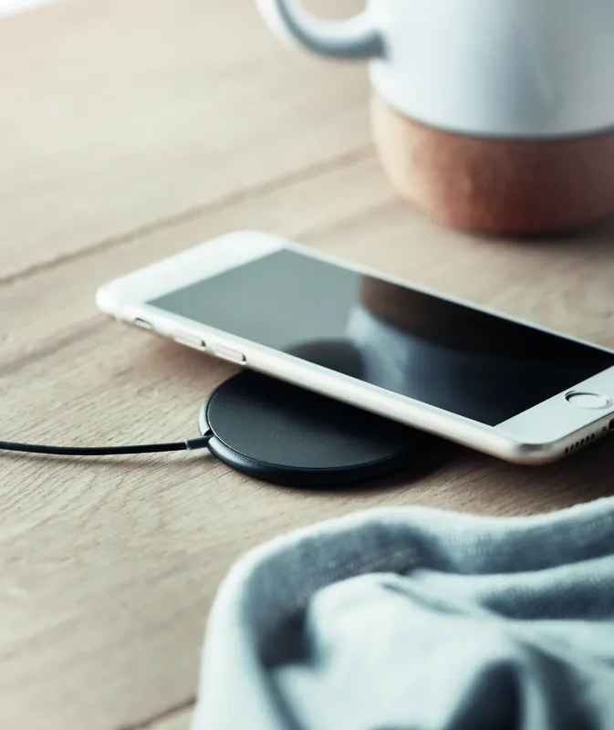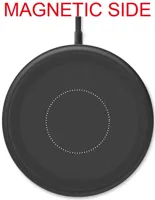 Mágneses vezeték nélküli töltő ABS-ből. Gyorstöltést lehetővé tévő DC 9V/1.1A (10W) teljesítménnyel. De a tartozék mágneses fémgyűrű segítségével más, nem mágneses, vezeték nélkül tölthető telefonokhoz is használható.
