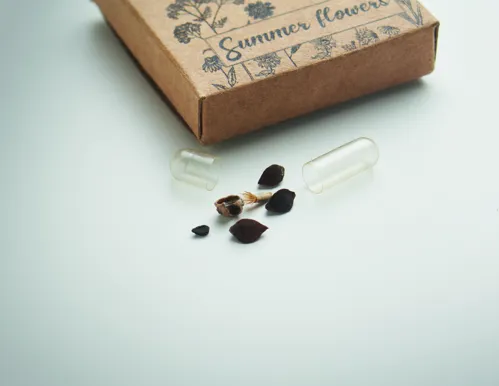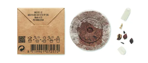 Préselt tőzeg korong nyári virágmag keverékkel, karton dobozban. EU-ban gyártva.