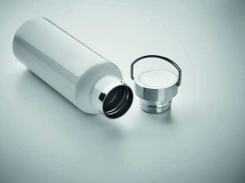 Duplafalú termoszpalack újrahasznosított rozsdamentes acélból (90% újrahasznosított rozsdamentes acél és 10% rozsdamentes acél), fogantyúval ellátott fedéllel. Szivárgásmentes. Űrtartalom: 500 ml.