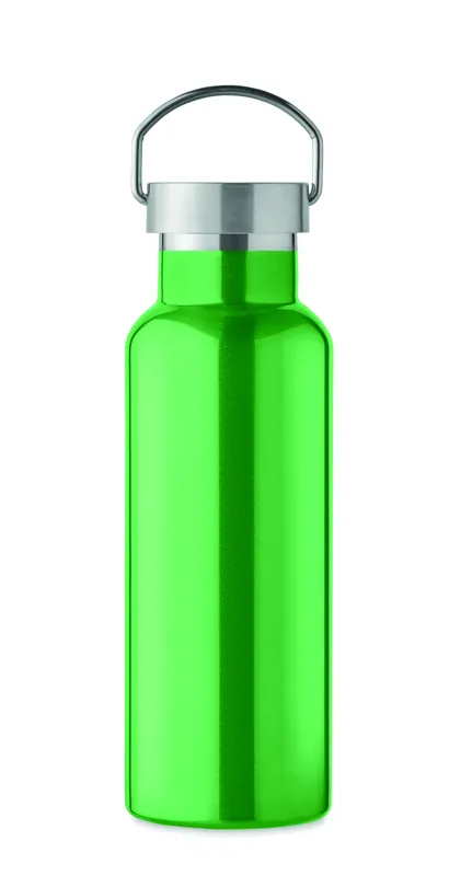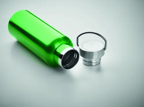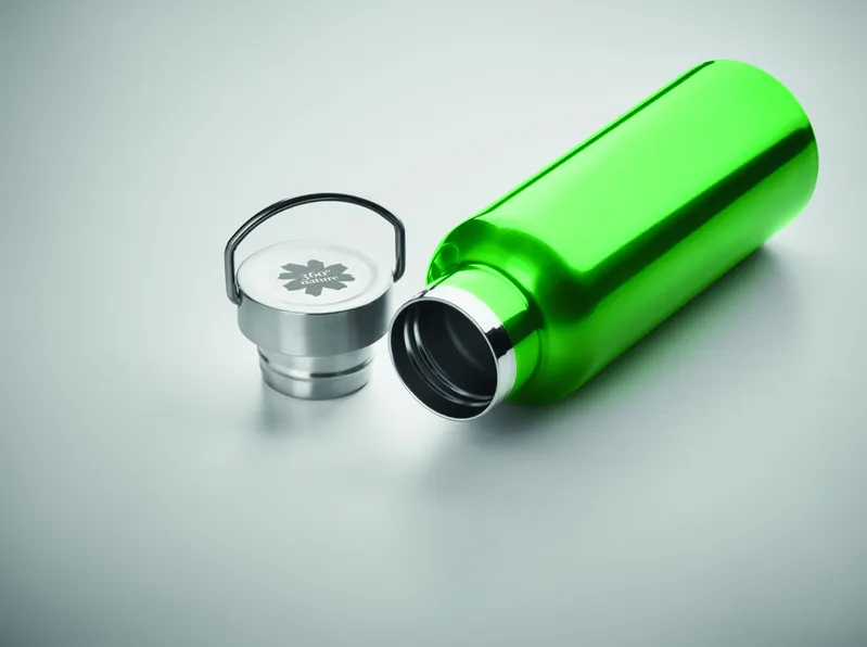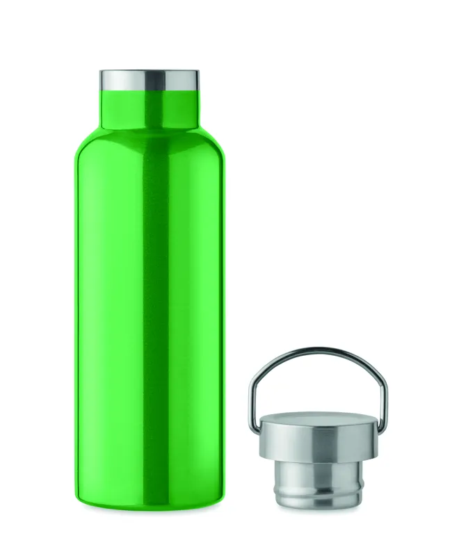 Duplafalú termoszpalack újrahasznosított rozsdamentes acélból (90% újrahasznosított rozsdamentes acél és 10% rozsdamentes acél), fogantyúval ellátott fedéllel. Szivárgásmentes. Űrtartalom: 500 ml.
