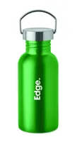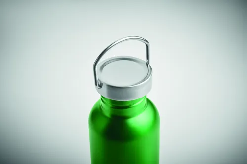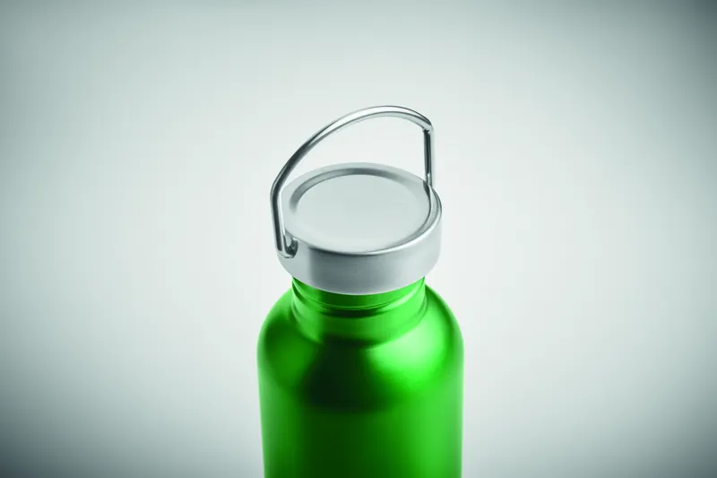 Szimplafalú palack újrahasznosított rozsdamentes acélból (90% újrahasznosított rozsdamentes acél és 10% rozsdamentes acél), fedéllel és fogantyúval. Szivárgásmentes. Űrtartalom: 500 ml. Mivel ez egy szimplafalú bögre, hőátadás lehetséges.