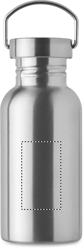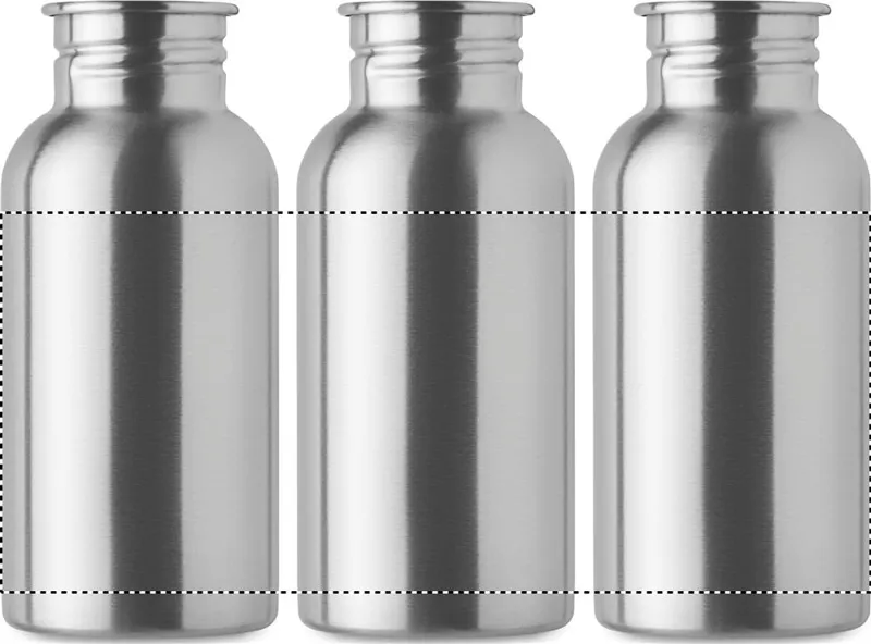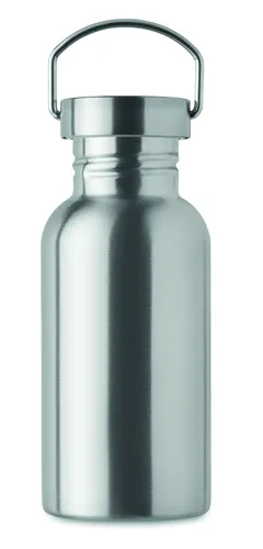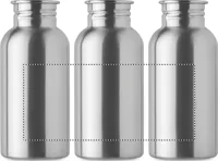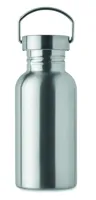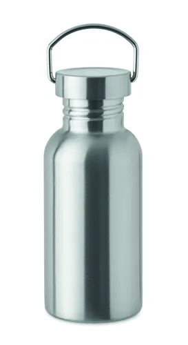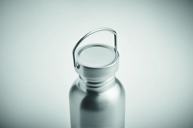 Szimplafalú palack újrahasznosított rozsdamentes acélból (90% újrahasznosított rozsdamentes acél és 10% rozsdamentes acél), fedéllel és fogantyúval. Szivárgásmentes. Űrtartalom: 500 ml. Mivel ez egy szimplafalú bögre, hőátadás lehetséges.