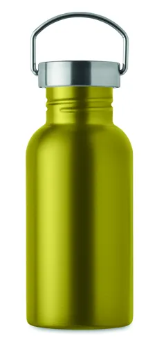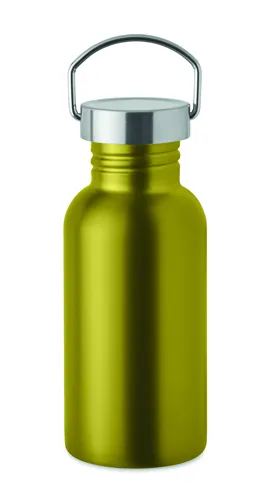 Szimplafalú palack újrahasznosított rozsdamentes acélból (90% újrahasznosított rozsdamentes acél és 10% rozsdamentes acél), fedéllel és fogantyúval. Szivárgásmentes. Űrtartalom: 500 ml. Mivel ez egy szimplafalú bögre, hőátadás lehetséges.