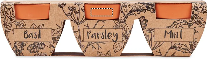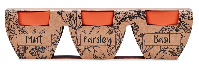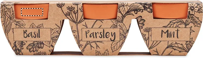 3 részes terrakotta ültető készlet, 3 különböző fűszernövény - menta, petrezselyem, bazsalikom - maggal. EU-ban gyártva.