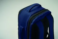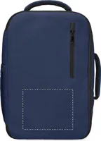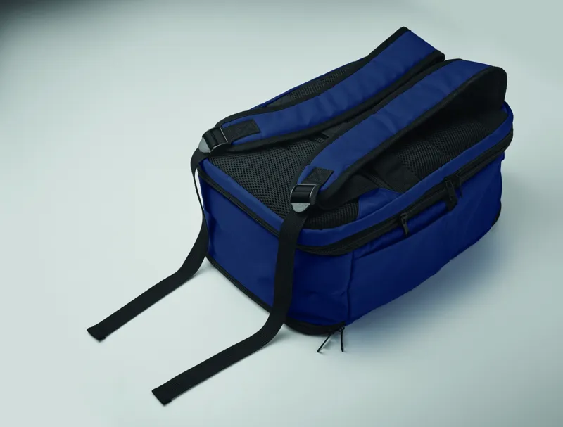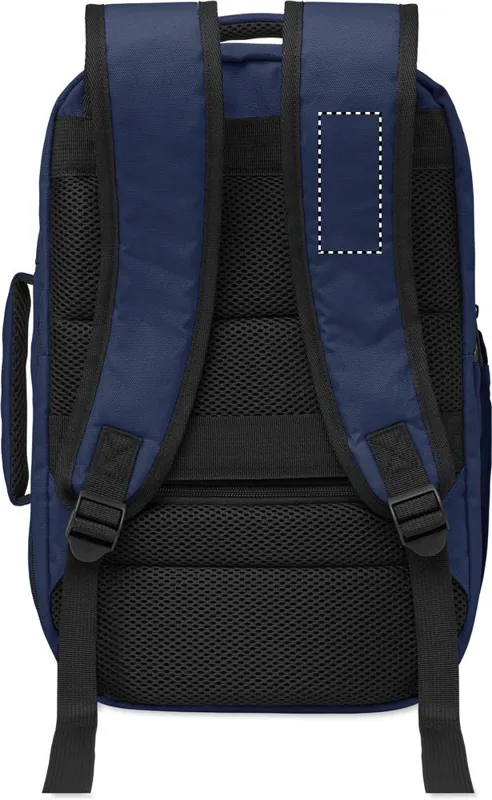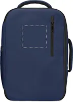 Kabinméretű, bővíthető hátizsák 600D RPET poliészterből, 180°-os nyitással. Fő rekesszel, két nyitott résszel, hálós elválasztóval, párnázott 15 colos laptop rekesszel és bőröndpánttal.