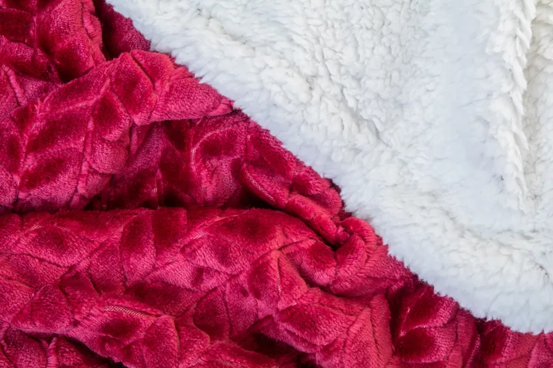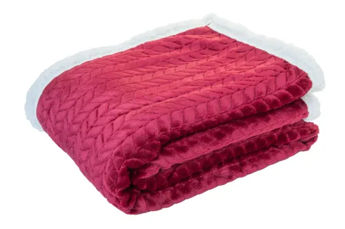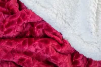 Kétrétegű RPET takaró jacquard mintázattal. 240 g/m² RPET flanel gyapjúval és kifordítható 210 g/m² RPET sherpagyapjú béléssel. Szalaggal és emblémázható papírkártyával körbetekerve szállítjuk.