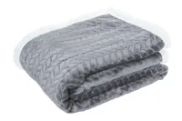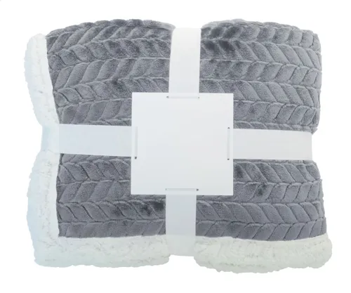 Kétrétegű RPET takaró jacquard mintázattal. 240 g/m² RPET flanel gyapjúval és kifordítható 210 g/m² RPET sherpagyapjú béléssel. Szalaggal és emblémázható papírkártyával körbetekerve szállítjuk.