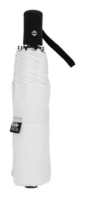 Teljesen automata (nyitás/zárás), szélálló, összecsukható esernyő 8 panellel, hozzáillő színű tasakban. Fém kerettel, üvegszálas bordákkal és gumírozott fogantyúval, kézi szíjjal. 190T RPET pongee. Megkülönböztető RPET címkével.
