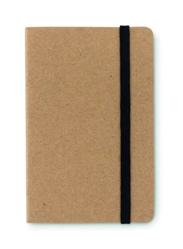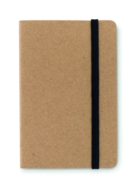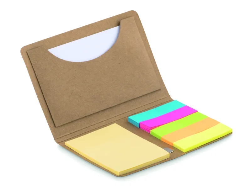 Kártyatartó kraftpapírból. Közepes méretű, újrahasznosított papírból készült, sárga öntapadós jegyzettömb és 5 különböző színű lapjelző. Elasztikus zárópánt.