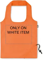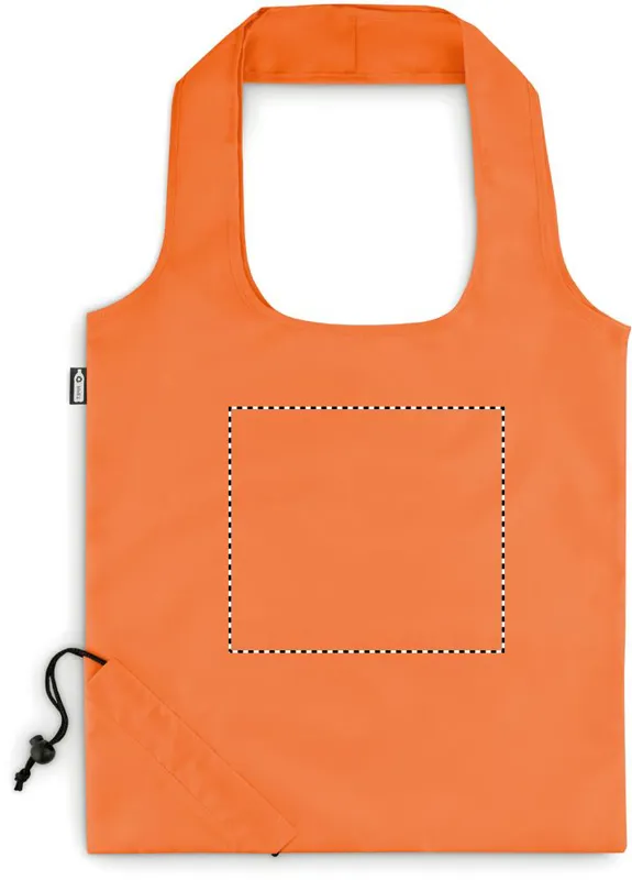 Összehajtható bevásárlótáska 190T RPET anyagból. A táska egyik sarkában kialakított praktikus húzózsinóros résznek köszönhetően kicsire összehúzható. A szublimációs nyomtatás csak a fehér színű terméken érhető el.