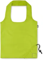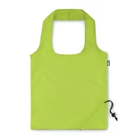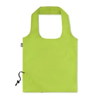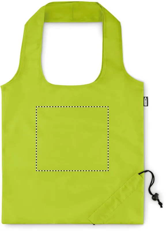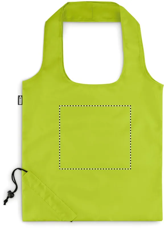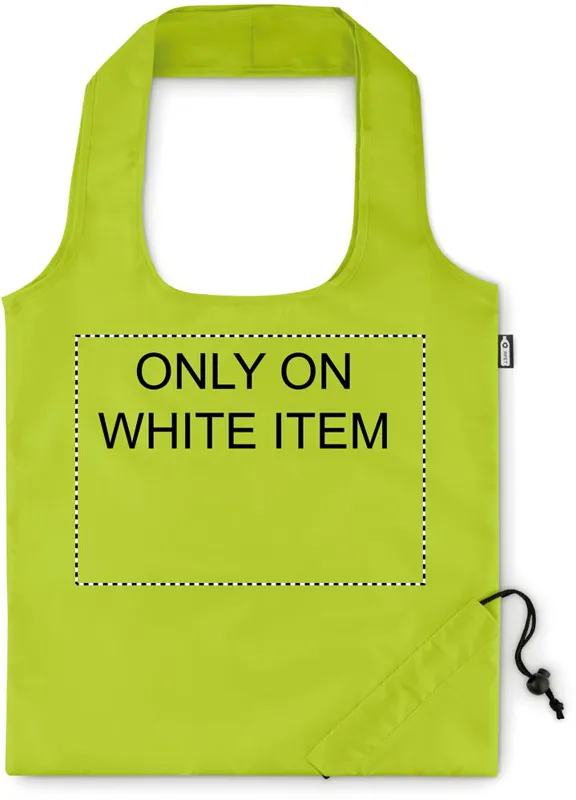 Összehajtható bevásárlótáska 190T RPET anyagból. A táska egyik sarkában kialakított praktikus húzózsinóros résznek köszönhetően kicsire összehúzható. A szublimációs nyomtatás csak a fehér színű terméken érhető el.