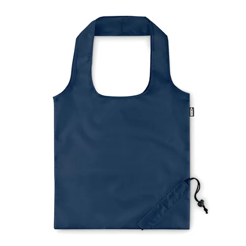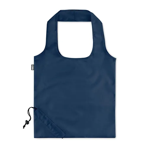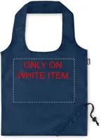 Összehajtható bevásárlótáska 190T RPET anyagból. A táska egyik sarkában kialakított praktikus húzózsinóros résznek köszönhetően kicsire összehúzható. A szublimációs nyomtatás csak a fehér színű terméken érhető el.