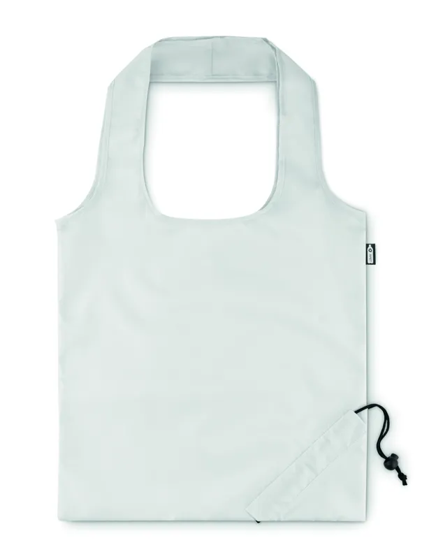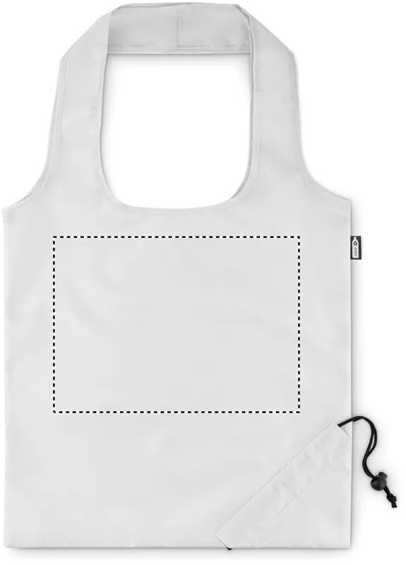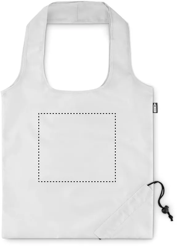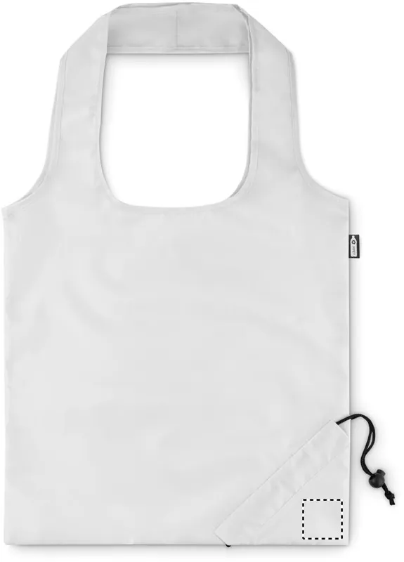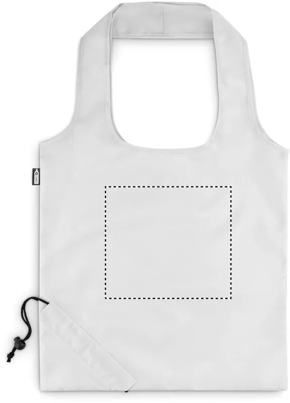 Összehajtható bevásárlótáska 190T RPET anyagból. A táska egyik sarkában kialakított praktikus húzózsinóros résznek köszönhetően kicsire összehúzható. A szublimációs nyomtatás csak a fehér színű terméken érhető el.