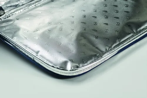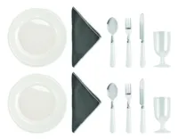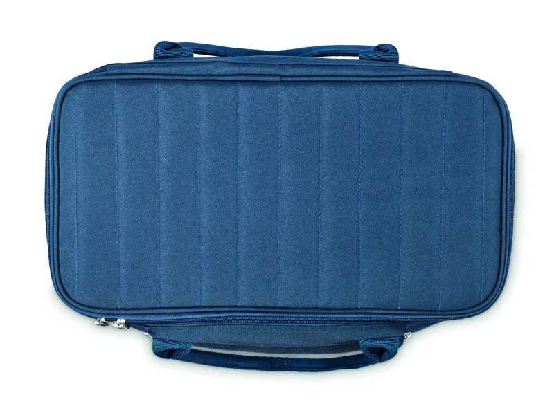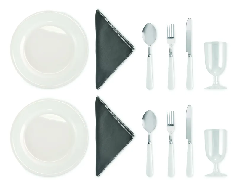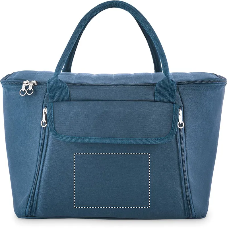 2 személyes piknik hűtőtáska 600D RPET poliészterből, cipzáras elülső zsebbel. Tartalmaz rozsdamentes evőeszközöket, 2 PS tányért, 2 PS poharat és 2 pamut szalvétát. Kapacitás: 18 l.