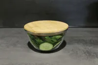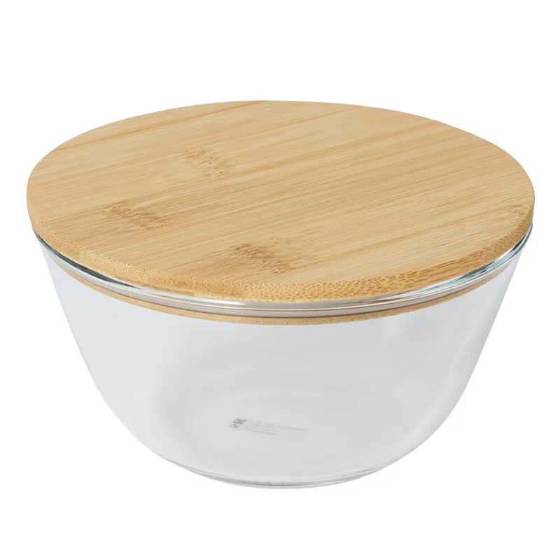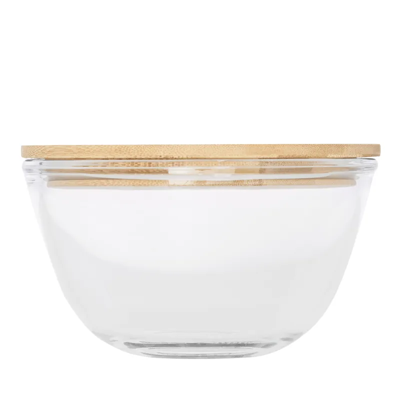 FRESH LUNCH üvegtál: bambusz fedéllel, űrtartalom kb. 800 ml, a tál alsó része üvegből, mely mikrohullámú sütőben, sütőben és mosogatógépben is használható