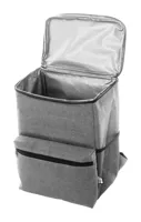 RPET hűtőtáska hátizsák cipzáras fő zsebbel, elülső zsebbel és hálós oldalzsebbel. PEVA párnázattal és megkülönböztető RPET címkével. 300D RPET poliészter.