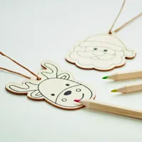 3 darab fából készült, kiszínezhető karácsonyfadíszből álló készlet, 4 színes ceruzával. Kraftpapír dobozban. A fa természetes anyag, termékenként szín- és méretbeli eltérések jelentkezhetnek, ami befolyásolhatja a dekoráció végső eredményét.