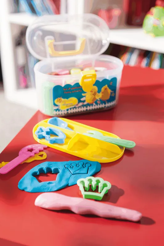 FUNNY ACTIVITY modellező gyurma szett tartalmaz 16 különböző színű gyurma rudat, 2 forma vágót és 4 szerszámot ( szín és forma variációk készítéséhez) praktikus, füles dobozban