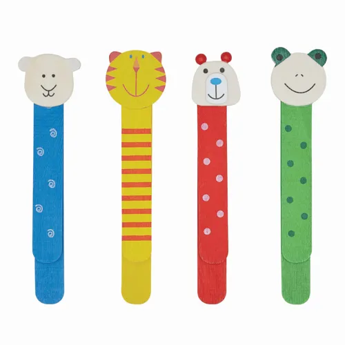 FUNNY ANIMALS fa könyvjelző, 4 különböző tréfás állatfigura fejjel, és vonalzóval a hátoldalán, vegyesen rendelhető