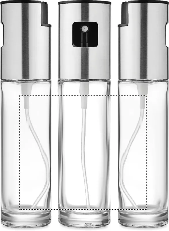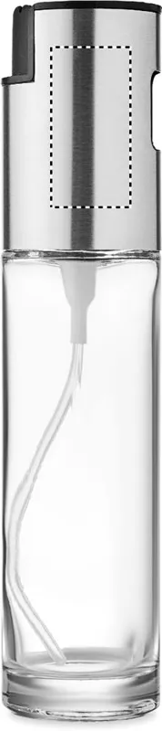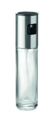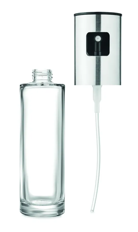 Üvegből készült olaj- vagy ételecet tartó rozsdamentes acél szórófejes adagolóval. Űrtartalom: 100 ml.